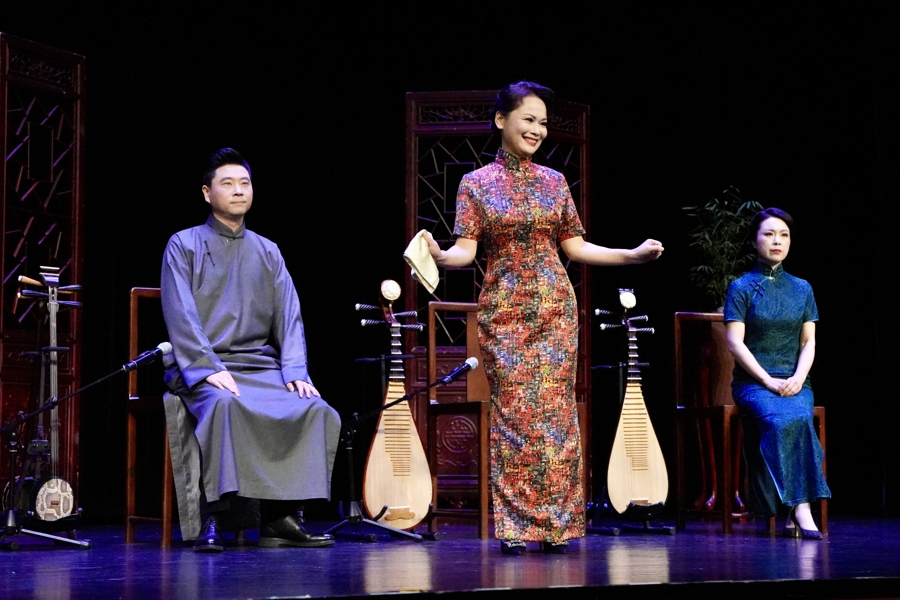 上海评弹团夏陆佳、朱琳、周慧三位优秀女演员分饰青少年、青年、中年三个不同时期的“金珍”,她们以各具特色又浑然一体的表演,刻画人物从青涩倔强、隐忍坚毅到通透绽放的生命历程,完成了一场跨越时空的演技接力。